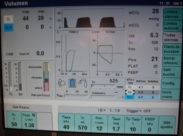 El mantenimiento se realiza con perfusión con sistema de bomba de Propofol y Remifentanilo. Los parámetros de respirador obtenidos son adecuados.