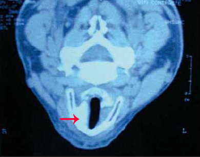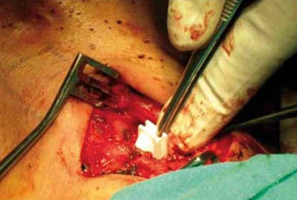 Paciente varón de 31 años accidente de trafico en año 2009, sin reacciones alérgicas medicamentosas conocidas, ni otros antecedentes personales de interés. El paciente acude a la consulta de ORL por disminución del tono de voz y episodios de atragantamiento, observándose en la exploración, abducción y parálisis de la cuerda vocal derecha, debida a cristal alojado en cuello desde accdiente de trafico quee afecto a n.laringeo recurrente derecho, por lo que es propuesto para la realización de una tiroplastia tipo I.