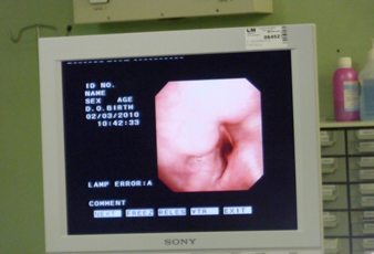 Se introdujo por fosa nasal la porción distal de un tubo del 6,5 haciendo la función de cánula nasal para centralizar y asegurar la posición del videoscopio durante toda la intervención.