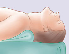 Decúbito supino con hiperextension cervical mediante rodillo con sabanas en los hombros.
