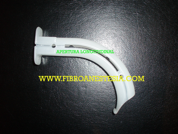 Presenta una pieza central que permite la colocación del tubo endotraqueal en posición medial y el paso del fibroscopio a su través. El fibroscopio queda protegido ante una posible mordedura.