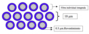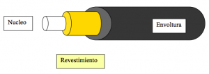 El revestimiento es una funda de plástico u otros materiales que protegen externamente y mantienen el vidrio libre de impurezas (polvo). El envoltorio a su vez protege las capas interiores. Las fibras de vidrio están fabricadas a alta temperatura con base de sicilio, su proceso de elaboración es controlado por medio de computadoras, para permitir que el índice de refracción de su núcleo, que es la guía de la onda luminosa, sea uniforme y evite las desviaciones.