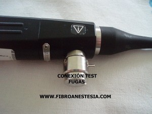 - Canal de trabajo: También en el mango encotramos la porción proximal del canal de trabajo. Este se puede utilizar tanto para la insuflación de oxígeno, como aspiración de secrecciones o instilación de anestésico local. Asocia un boton que se acciona con el dedo índice, y pone en funcionamiento bien el oxigeno conectado o la aspiración según hayamos elegido.