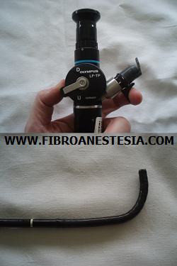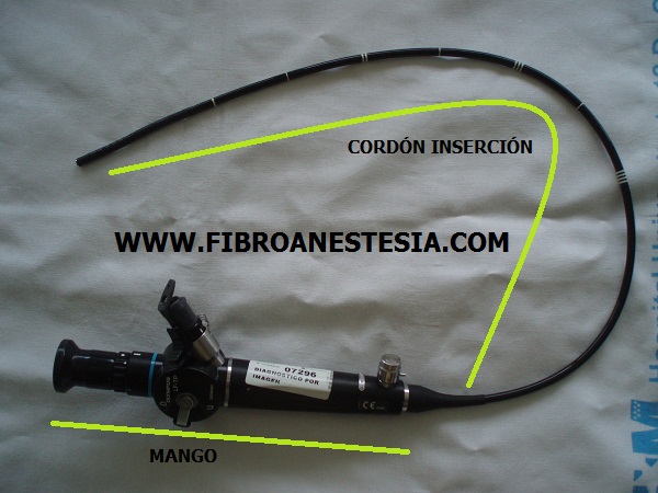 El ocular se puede enfocar para acomodarse a cualquier cambio en la visióndel operador. Solo la porción distal (últimos 10 cm) del cordón de inserción del fibroscopio se mueve activamente en sentido vertical (norte-sur), movimiento que es activado por una palanca de control situada en la parte posterior del mango. Para asegurarse que el plano de movimiento es vertical y no diagonal, el cuerpo del fibroscopio debe mantenerse completamente extendido.