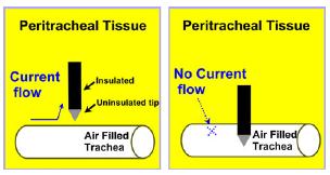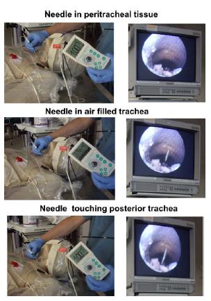 El método permite detectar la entrada en el espacio aéreo traqueal el contacto con la pared posterior, probando esta teoría en dos cadáveres con buenos resultados.