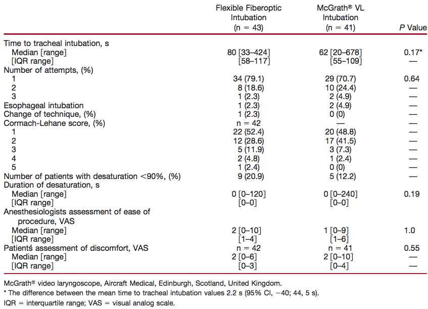 - El objetivo de este estudio fue comparar la intubación con paciente despierto mediante fibroscopio vs videolaringoscopio McGrath. Siendo la hipótesis de trabajo que el procso sería más rápido con el videolaringoscopio.