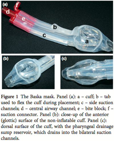 - Se presenta un estudio observacional en el que se incluyeron un total de 30 mujeres con bajo riesgo anestésico en las cual se utililizo un nuevo dispositivo supraglótico, la mascarilla Baska.
