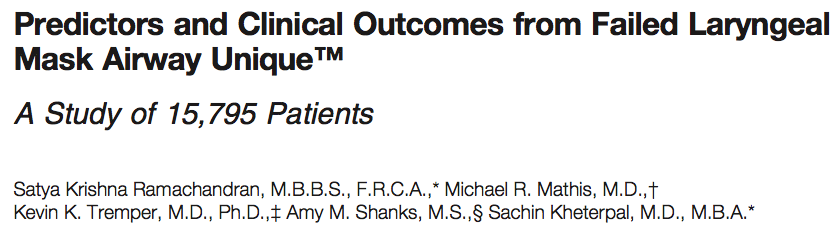 - Se analizaron un total de 15.795 casos en los que se precisó el uso de una LMA-unique durante el periodo comprendido entre 2006-2009. Se encontraron un total de 170 casos en los que produjo el objetivo primario del estudio: fallo del uso del dispositivo que precisó retirada e intubación traqueal.