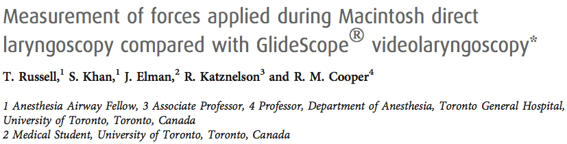 - Interesante estudio en el que se pretende comparar la fuerza ejercida sobre la base de la lengua, mediante laringoscopia Macintosh o con el videolaringoscopio Glidescope.