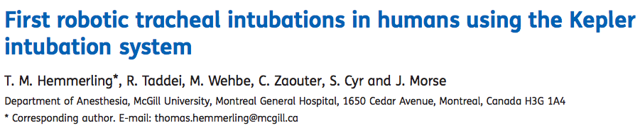 - En este trabajo se presenta los primeros 12 casos de intentos de intubación con el sistema robótico de intubación Kepler (KIS) que implica: Joystick, brazo robótico JACO y un videolaringoscopio Pentax AWS.