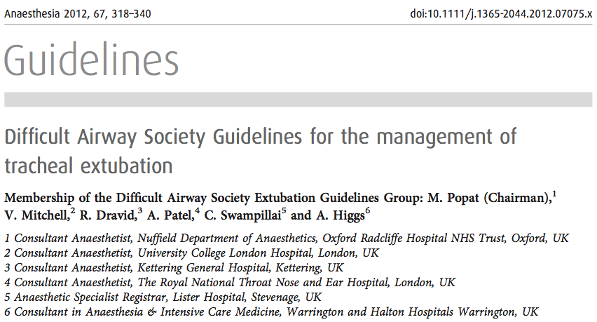 - Publicación de las guias de extubación de la Sociedad Inglesa de Vía Aérea Difícil (DAS) un documento indispensable en vuestra biblioteca.
