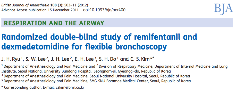 - Concluyen que la Dexmedetomidina se asoció a una menor incidencia de desaturación y menor necesidad de succión, sin embargo el tlempo de recuperación del paciente fue mayor, y la satisfacción del broncoscopista menor.
