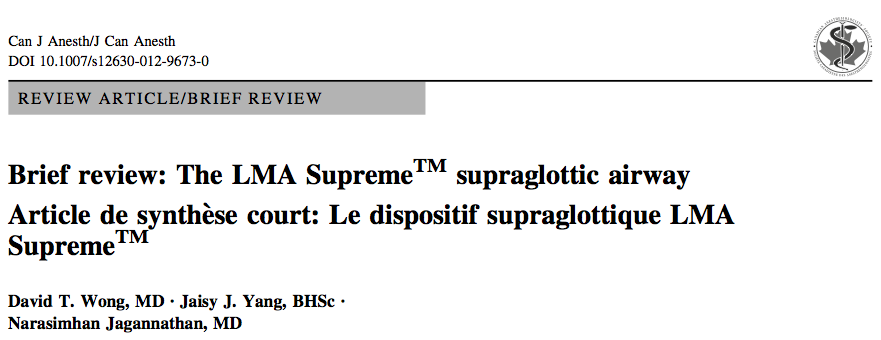 - Interesante revisión sobre las características esenciales de la mascarilla laringea Supreme, así como los distintos artículos y situaciones clínicas en que ha sido comparada con el resto de dispositivos supraglóticos.