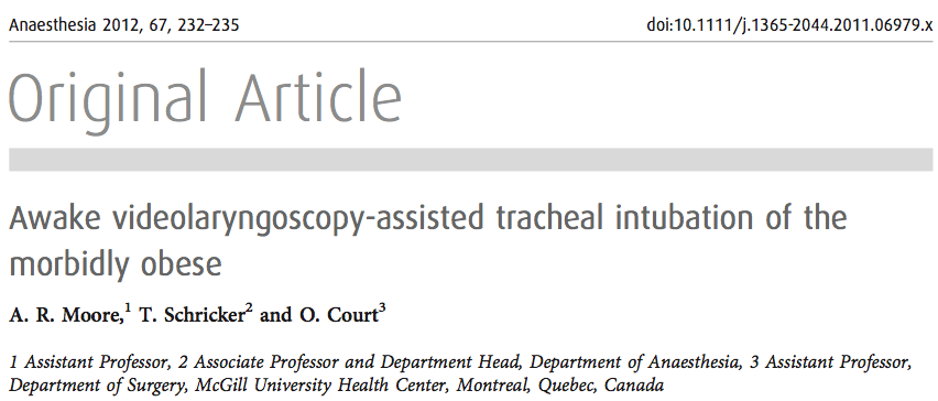 - Concluyen que la técnica de intubación con videolaringoscopio despierto en paciente obeso mórbido puede ser útil, y que los fallos se podrían haber evitado haciendo un bloqueo adecuado del n.glosofaringeo, aconsejando su uso.