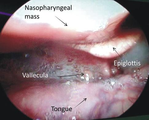 - Bajo visión directa con endoscopio rigido se determió la presencia de un polipo dependiente de la úvula que colapsaba parcialmente el espacio faringeo posterior.