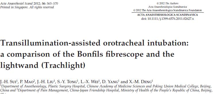 - Concluyen que en pacientes con vía aérea normal, la Varilla Luminosa es superior para la intubación orotraqueal, con respecto al exito, rapidez y complicaciones, en relación al Bonfils, usando la técnica de transiluminación.