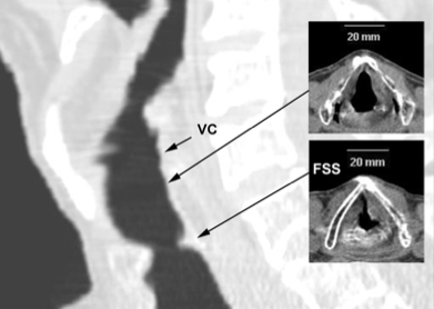 - Se realizó una fibrobroncoscopio que evidencio un estenosis subglótica del 75 % y se realizo un CT que mostraba una anillo a 1,2 cm de cuerdas vocales.