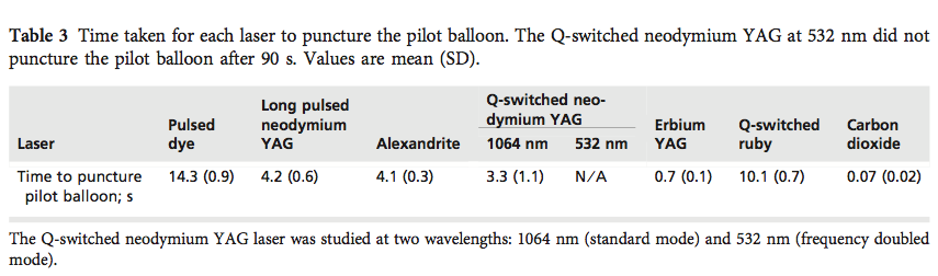 - Se concluye que todos los láseres utilizados dañaron el balón de neumotaponamiento en menos de 15 segundos, debiendo tener especial precaución en el caso de los láseres de CO2 y Erbium Yag por producir el daño en menos de 1 segundo.