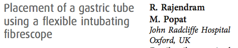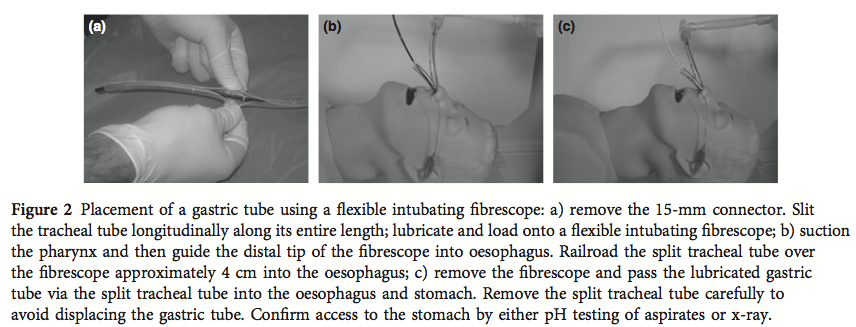 - Los autores exponen un método sencillo para la colocación de una sonda naso u orogástrica con la ayuda de un fibroscopio y un tubo de 5 mm cortado a lo largo, para pacientes en los que la técnica sea dificultosa.