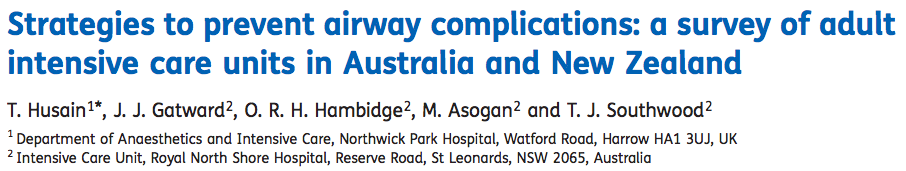 - Se realizó una encuesta telefónica de todas las UCIs de pacientes adultos de Australia y Nueva Zelanda, para determinar las estrategias implementadas para reducir las complicaciones derivadas del manejo de la vía aérea en cinco puntos clave: