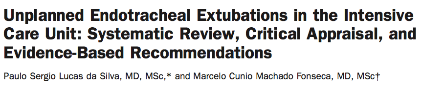 - 13 estudios incluían medidas de prevención, y en ellos se hacía especial énfasis en la recopilación de datos para su posterior estudio, estandarización de procedimientos, formación continua del personal, vigilancia del persona y la identificación y manejo de los pacientes con alto riesgo. Publican un descenso con la aplicación de estos medios de entre el 22-53% de las extubaciones no programadas.