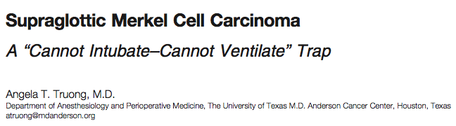 - Se presenta un interesante caso clínico de una mujer de 72 años con una adenoapatía en cuello y moderada disfagia, programada para resección de un carcinoma de células de Merkel supraglótico.